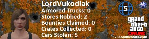 [URL=http://GTAonlinestats.com/showplayer/LordVukodlak/3][IMG]http://GTAonlinestats.com/crimesignature/LordVukodlak/3/sig.png[/IMG][/URL]