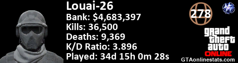 <a href="http://GTAonlinestats.com/showplayer/Louai-26"><img src="http://GTAonlinestats.com/signature/Louai-26/sig.png" alt="Louai-26" border="0" /></a>
