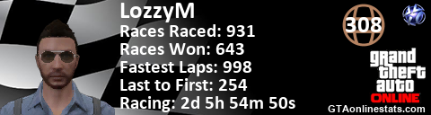 <a href="http://GTAonlinestats.com/showplayer/LozzyM"><img src="http://GTAonlinestats.com/racesignature/LozzyM/sig.png" alt="LozzyM" border="0" /></a>