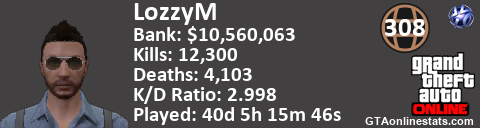 <a href="http://GTAonlinestats.com/showplayer/LozzyM"><img src="http://GTAonlinestats.com/dmsignature/LozzyM/sig.png" alt="LozzyM" border="0" /></a>