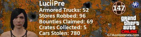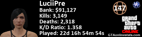[URL=http://GTAonlinestats.com/showplayer/LuciiPre][IMG]http://GTAonlinestats.com/randomsignature/LuciiPre/sig.png[/IMG][/URL]