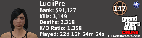 [URL=http://GTAonlinestats.com/showplayer/LuciiPre][IMG]http://GTAonlinestats.com/signature/LuciiPre/sig.png[/IMG][/URL]