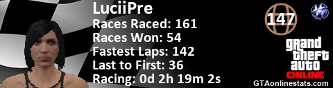 <a href="http://GTAonlinestats.com/showplayer/LuciiPre"><img src="http://GTAonlinestats.com/racesignature/LuciiPre/sig.png" alt="LuciiPre" border="0" /></a>