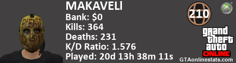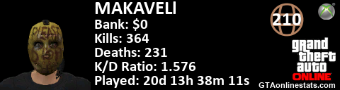 <a href="http://GTAonlinestats.com/showplayer/MAKAVELl"><img src="http://GTAonlinestats.com/dmsignature/MAKAVELl/sig.png" alt="MAKAVELl" border="0" /></a>