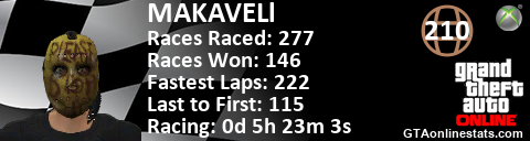 [URL=http://GTAonlinestats.com/showplayer/MAKAVELl][IMG]http://GTAonlinestats.com/racesignature/MAKAVELl/sig.png[/IMG][/URL]