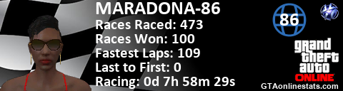 [URL=http://GTAonlinestats.com/showplayer/MARADONA-86][IMG]http://GTAonlinestats.com/racesignature/MARADONA-86/sig.png[/IMG][/URL]