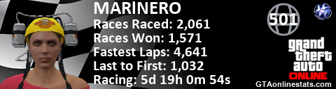 [URL=http://GTAonlinestats.com/showplayer/MARlNERO][IMG]http://GTAonlinestats.com/racesignature/MARlNERO/sig.png[/IMG][/URL]
