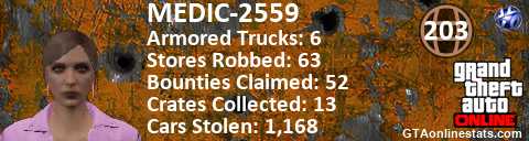 [URL=http://GTAonlinestats.com/showplayer/MEDIC-2559][IMG]http://GTAonlinestats.com/crimesignature/MEDIC-2559/sig.png[/IMG][/URL]