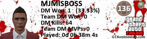 <a href="http://GTAonlinestats.com/showplayer/MJMISBOSS"><img src="http://GTAonlinestats.com/dmsignature/MJMISBOSS/sig.png" alt="MJMISBOSS" border="0" /></a>