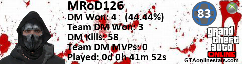 [URL=http://GTAonlinestats.com/showplayer/MRoD126][IMG]http://GTAonlinestats.com/dmsignature/MRoD126/sig.png[/IMG][/URL]