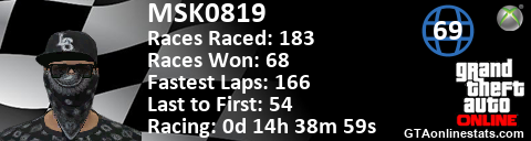 <a href="http://GTAonlinestats.com/showplayer/MSK0819"><img src="http://GTAonlinestats.com/racesignature/MSK0819/sig.png" alt="MSK0819" border="0" /></a>