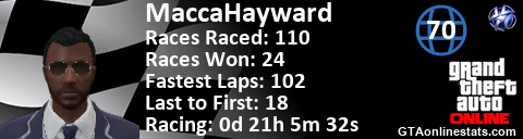 [URL=http://GTAonlinestats.com/showplayer/MaccaHayward][IMG]http://GTAonlinestats.com/racesignature/MaccaHayward/sig.png[/IMG][/URL]