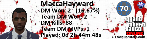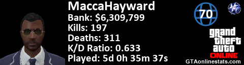 [URL=http://GTAonlinestats.com/showplayer/MaccaHayward][IMG]http://GTAonlinestats.com/dmsignature/MaccaHayward/sig.png[/IMG][/URL]