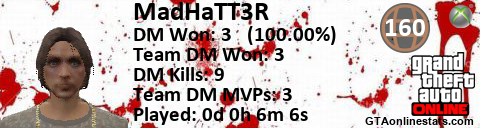 [URL=http://GTAonlinestats.com/showplayer/MadHaTT3R][IMG]http://GTAonlinestats.com/greysignature/MadHaTT3R/sig.png[/IMG][/URL]