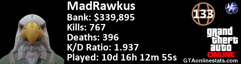 <a href="http://GTAonlinestats.com/showplayer/MadRawkus"><img src="http://GTAonlinestats.com/signature/MadRawkus/sig.png" alt="MadRawkus" border="0" /></a>