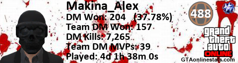 [URL=http://GTAonlinestats.com/showplayer/Makina_Alex][IMG]http://GTAonlinestats.com/dmsignature/Makina_Alex/sig.png[/IMG][/URL]