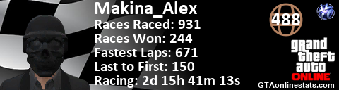 <a href="http://GTAonlinestats.com/showplayer/Makina_Alex"><img src="http://GTAonlinestats.com/racesignature/Makina_Alex/sig.png" alt="Makina_Alex" border="0" /></a>