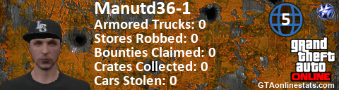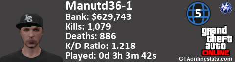 <a href="http://GTAonlinestats.com/showplayer/Manutd36-1/2"><img src="http://GTAonlinestats.com/signature/Manutd36-1/2/sig.png" alt="Manutd36-1" border="0" /></a>