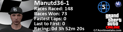 <a href="http://GTAonlinestats.com/showplayer/Manutd36-1/2"><img src="http://GTAonlinestats.com/racesignature/Manutd36-1/2/sig.png" alt="Manutd36-1" border="0" /></a>