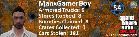 [URL=http://GTAonlinestats.com/showplayer/ManxGamerBoy][IMG]http://GTAonlinestats.com/crimesignature/ManxGamerBoy/sig.png[/IMG][/URL]