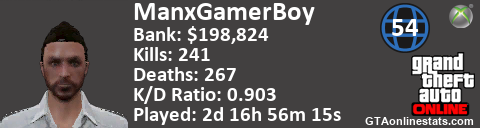 <a href="http://GTAonlinestats.com/showplayer/ManxGamerBoy"><img src="http://GTAonlinestats.com/dmsignature/ManxGamerBoy/sig.png" alt="ManxGamerBoy" border="0" /></a>