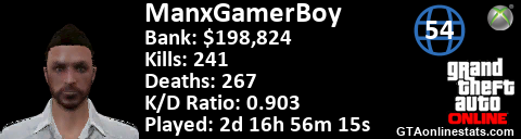 [URL=http://GTAonlinestats.com/showplayer/ManxGamerBoy][IMG]http://GTAonlinestats.com/signature/ManxGamerBoy/sig.png[/IMG][/URL]