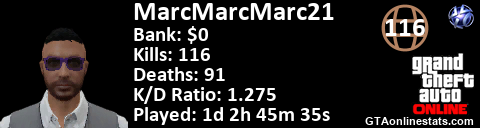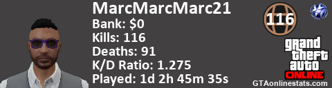 <a href="http://GTAonlinestats.com/showplayer/MarcMarcMarc21"><img src="http://GTAonlinestats.com/signature/MarcMarcMarc21/sig.png" alt="MarcMarcMarc21" border="0" /></a>