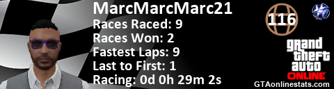 [URL=http://GTAonlinestats.com/showplayer/MarcMarcMarc21][IMG]http://GTAonlinestats.com/racesignature/MarcMarcMarc21/sig.png[/IMG][/URL]