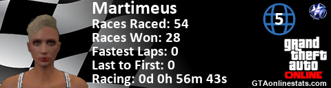 <a href="http://GTAonlinestats.com/showplayer/Martimeus/2"><img src="http://GTAonlinestats.com/racesignature/Martimeus/2/sig.png" alt="Martimeus" border="0" /></a>
