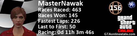 <a href="http://GTAonlinestats.com/showplayer/MasterNawak"><img src="http://GTAonlinestats.com/racesignature/MasterNawak/sig.png" alt="MasterNawak" border="0" /></a>