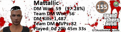 [URL=http://GTAonlinestats.com/showplayer/Mattallic][IMG]http://GTAonlinestats.com/dmsignature/Mattallic/sig.png[/IMG][/URL]