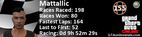 <a href="http://GTAonlinestats.com/showplayer/Mattallic"><img src="http://GTAonlinestats.com/racesignature/Mattallic/sig.png" alt="Mattallic" border="0" /></a>