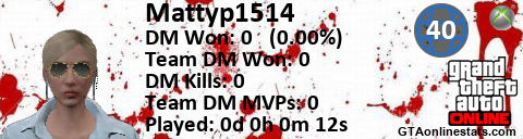 [URL=http://GTAonlinestats.com/showplayer/Mattyp1514/2][IMG]http://GTAonlinestats.com/dmsignature/Mattyp1514/2/sig.png[/IMG][/URL]
