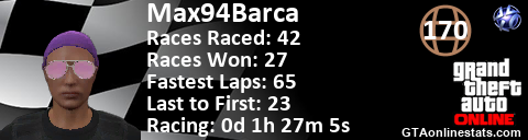 <a href="http://GTAonlinestats.com/showplayer/Max94Barca"><img src="http://GTAonlinestats.com/racesignature/Max94Barca/sig.png" alt="Max94Barca" border="0" /></a>