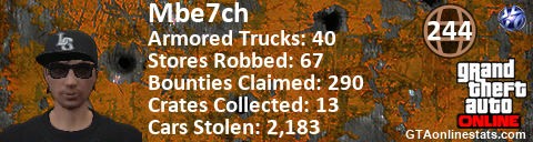 <a href="http://GTAonlinestats.com/showplayer/Mbe7ch"><img src="http://GTAonlinestats.com/crimesignature/Mbe7ch/sig.png" alt="Mbe7ch" border="0" /></a>