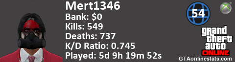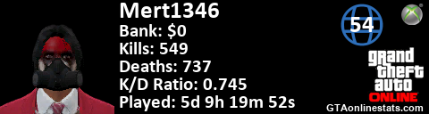 <a href="http://GTAonlinestats.com/showplayer/Mert1346"><img src="http://GTAonlinestats.com/randomsignature/Mert1346/sig.png" alt="Mert1346" border="0" /></a>