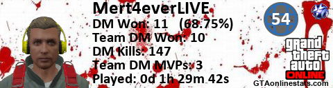 [URL=http://GTAonlinestats.com/showplayer/Mert4everLIVE][IMG]http://GTAonlinestats.com/signature/Mert4everLIVE/sig.png[/IMG][/URL]