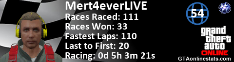 <a href="http://GTAonlinestats.com/showplayer/Mert4everLIVE"><img src="http://GTAonlinestats.com/racesignature/Mert4everLIVE/sig.png" alt="Mert4eveRLIVE" border="0" /></a>