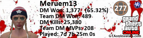 [URL=http://GTAonlinestats.com/showplayer/Meruem13][IMG]http://GTAonlinestats.com/dmsignature/Meruem13/sig.png[/IMG][/URL]