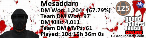 [URL=http://GTAonlinestats.com/showplayer/Mesaddam/3][IMG]http://GTAonlinestats.com/dmsignature/Mesaddam/3/sig.png[/IMG][/URL]