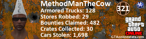 [URL=http://GTAonlinestats.com/showplayer/MethodManTheCow][IMG]http://GTAonlinestats.com/greysignature/MethodManTheCow/sig.png[/IMG][/URL]