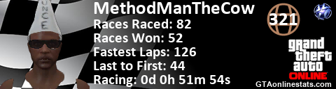 <a href="http://GTAonlinestats.com/showplayer/MethodManTheCow"><img src="http://GTAonlinestats.com/racesignature/MethodManTheCow/sig.png" alt="MethodManTheCow" border="0" /></a>