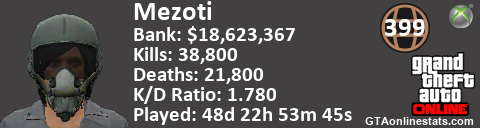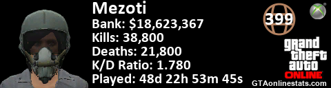 [URL=http://GTAonlinestats.com/showplayer/Mezoti][IMG]http://GTAonlinestats.com/dmsignature/Mezoti/sig.png[/IMG][/URL]