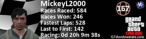 [URL=http://GTAonlinestats.com/showplayer/MickeyL2000][IMG]http://GTAonlinestats.com/racesignature/MickeyL2000/sig.png[/IMG][/URL]