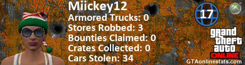 [URL=http://GTAonlinestats.com/showplayer/Miickey12/2][IMG]http://GTAonlinestats.com/crimesignature/Miickey12/2/sig.png[/IMG][/URL]