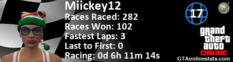[URL=http://GTAonlinestats.com/showplayer/Miickey12/2][IMG]http://GTAonlinestats.com/racesignature/Miickey12/2/sig.png[/IMG][/URL]