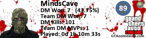 [URL=http://GTAonlinestats.com/showplayer/MindsCave][IMG]http://GTAonlinestats.com/greysignature/MindsCave/sig.png[/IMG][/URL]