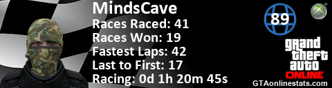 <a href="http://GTAonlinestats.com/showplayer/MindsCave"><img src="http://GTAonlinestats.com/racesignature/MindsCave/sig.png" alt="MindsCave" border="0" /></a>