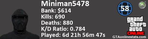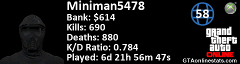 <a href="http://GTAonlinestats.com/showplayer/Miniman5478"><img src="http://GTAonlinestats.com/signature/Miniman5478/sig.png" alt="miniman5478" border="0" /></a>
