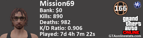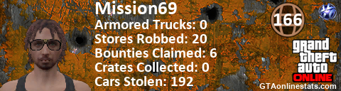 <a href="http://GTAonlinestats.com/showplayer/Mission69"><img src="http://GTAonlinestats.com/randomsignature/Mission69/sig.png" alt="Mission69" border="0" /></a>